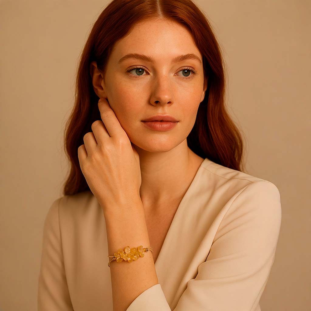 A Pulseira Calissa Solar é como um raio de sol que ilumina seu estilo, combinando design vibrante e energia contagiante para mulheres que brilham com intensidade própria.